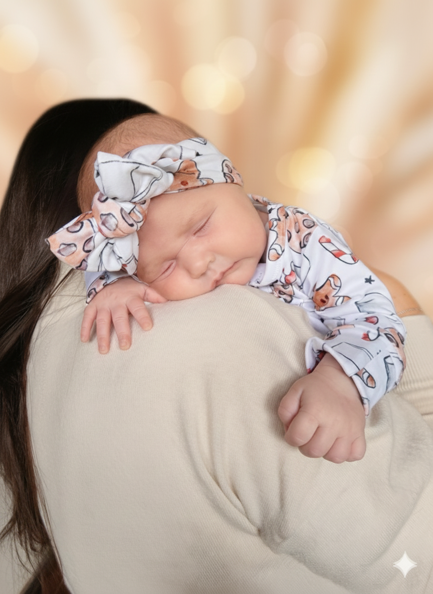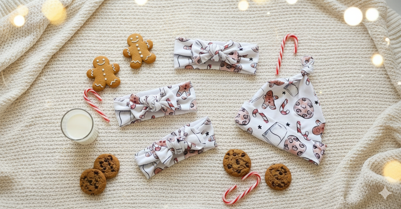 Adorn your little one in our irresistible collection of soft-knit accessories. This beautiful set includes a signature knot-bow headband in a charming print or a coordinating cozy beanie—perfect for keeping tiny heads warm and stylish. Made from a breathable, stretchy fabric, they ensure a gentle, non-irritating fit for sensitive newborn skin. These pieces pair beautifully with our Milk&Cookies baby grower for a complete and cozy outfit. An essential accessory for those precious first photos and everyday comfort.